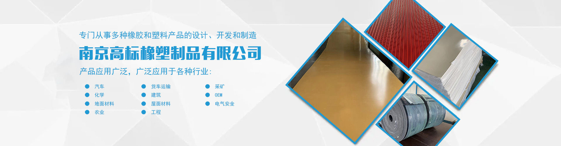 南京高標(biāo)橡塑制品有限公司是一家專業(yè)的橡膠板、橡膠制品和熱塑性塑料產(chǎn)品的制造商。主營(yíng)產(chǎn)品:三元乙丙橡膠板,丁腈橡膠版,氯丁橡膠板,丁苯橡膠板,丁基橡膠板,天然橡膠板,硅橡膠板,氟橡膠板,絕緣,防靜電,導(dǎo)電橡膠板,夾布,夾金屬網(wǎng)橡膠板,耐酸堿橡膠板,耐油橡膠板,耐磨橡膠板,阻燃橡膠板,阻尼橡膠板,減震橡膠板,防滑橡膠板,橡膠墊片等。 高標(biāo)橡塑專門從事多種橡膠和塑料產(chǎn)品的設(shè)計(jì)、開(kāi)發(fā)和制造。我們的產(chǎn)品應(yīng)用廣泛。廣泛應(yīng)用于各種行業(yè),包括:汽車,貨車運(yùn)輸,采礦,化學(xué),建筑,OEM,地面材料,屋面材料,電氣安全,農(nóng)業(yè),工程等。 高標(biāo)橡塑的客戶服務(wù)于許多行業(yè),包括墊片切割、分銷商、工業(yè)用品零售商和批發(fā)商。自